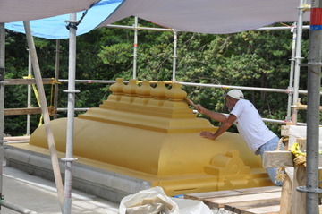 The gilders are moving forward with the priming of the chinna gopurams Click here for a slide show