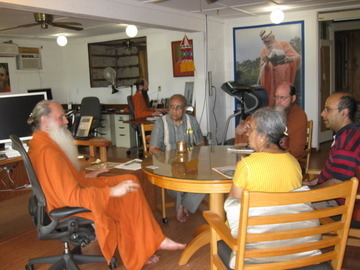 After an extensive tour of Iraivan Temple and San Marga, the family met with the editors of Hinduism Today. Managing editor, Arumugaswami discusses a Sanskrit translation project in the works with Dr. Ramani. Dr. Ramani is a retired professor of Engineering and was head of the department at the University associated with the Kanchipuram Puram Mutt and the Shankaracharya, Shri Chandrashekarendra Saraswati.
