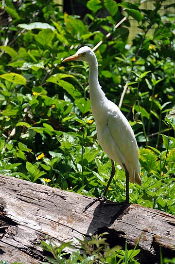 June 20, 2009This is Ashvin the egret, the new resident of our property. He seems to have hurt his wings and was seen warily walking around in the first weeks, but by now he has figured out that we practice ahimsa.