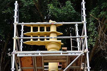 The kodimaram (flagpole) in front of Kadavul Temple has had it's undercoating applied. Gilding was delayed because of rain yesterday.