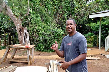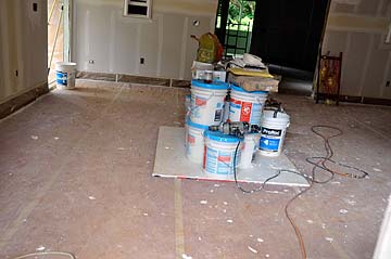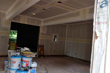 It is Saturday today and the team is off the job, all but one man, Willie who is an expert at taping and filling dry wall.