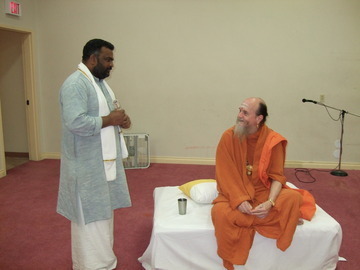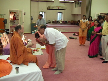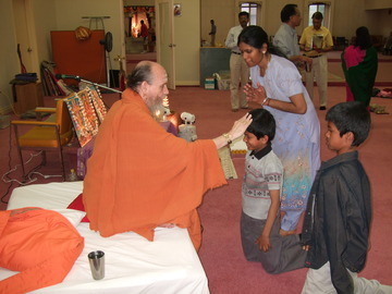 Following the discourse, many devotees come forth thanking Bodhinatha for his clear, concise talk and receive vibhuti prasadam.