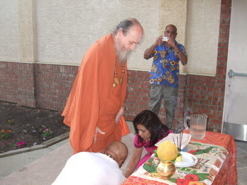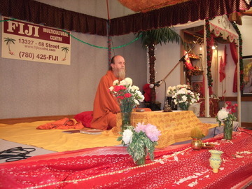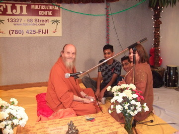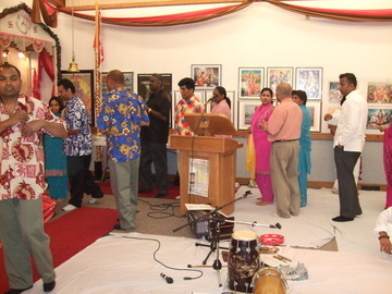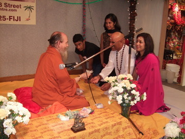 June 25, 2009At the Fiji Multicultural Center Bodhinatha is greeted by Rajesh Bali and his wife. He receives the traditional feet washing before entering the center.