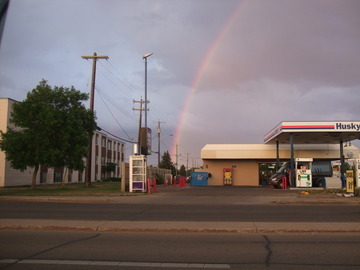 A rainbow came out just to remind the traveling monks of their home in Hawaii.