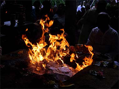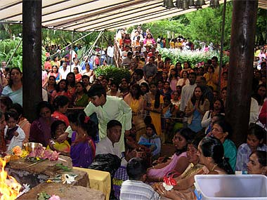 As usual hundreds of prayers went into the the large Homa pit placed just in front of the huge granite murthi.