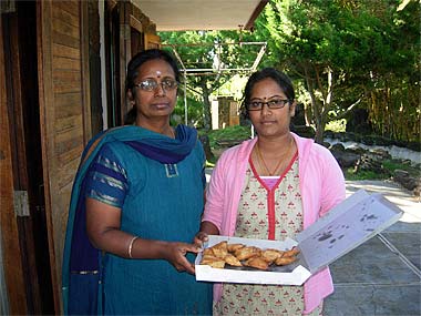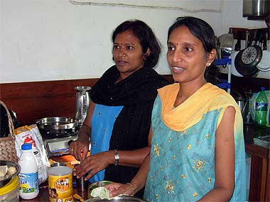 Anandi foreground, from Quatre Bornes and Mrs Munian from St. Julien preparing the coffee for us. Thank you!
