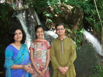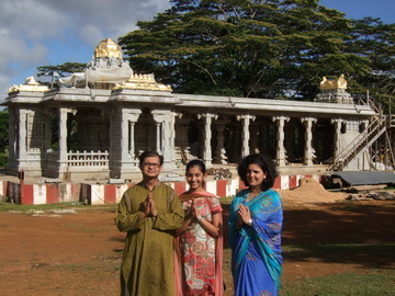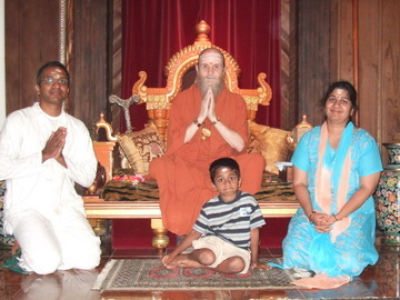 July 4, 2009Anand Yegnanarayan family is on pilgrimage from Los Angeles area. They last visited when their son, Abhinav, was six months old. Now he is five. Abhinav showed talent for bharata natyam dance, so he's now enrolled in a dance school. He demonstrated some dance moves for Bodhinatha.