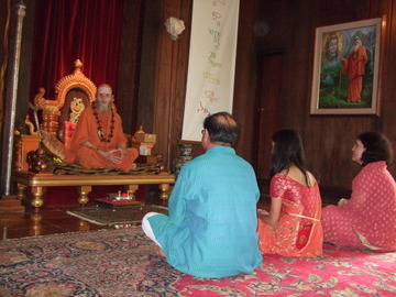 July 5, 2009Our Guru Purnima pilgrims Mrunal, Padmaja and Pooja Patel had darshan with Bodhinatha. Pooja took the brahmacharya vrata.