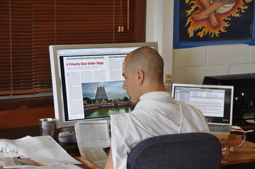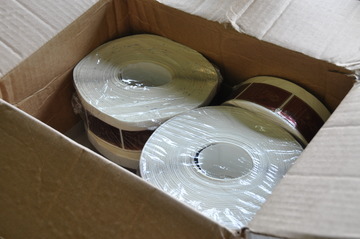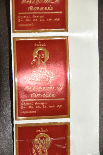 Then a box arrived with this foil sticker, which the monks designed a few weeks back. It is the monastery's gift to the Sivathondan Nilayam on KKS Road in Jaffna. They needed it for putting on vibuthi bags which they give to all visitors, and they had admired the Kadavul vibuthi bags.