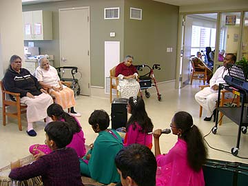 As part of the summer camp teaching programs, Rishi Thondunathan takes the students to different elderly homes in the Toronto area, to sing bhajans and interact with the elders in the home. In this way, the children learn first hand the responsibility of caring for the elderly and seeking their wisdom.