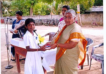 One of the current projects of the Sri Subramuniya Kottam of Kopay is providing a math/compass set to all the less fortunate students who do not have the set. Last May, the first school in Kopay received 65 math/compass sets. The Kottam's goal is to provide sets to all the schools in Kopay Village and eventually, with the Grace of God, expand to all the schools in the Jaffna district. This small gift was very much appreciated by the students, their parents and their teachers.