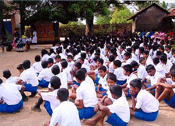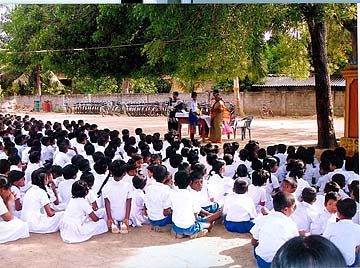 In Sri Lanka most of the rural schools do not have an assembly hall so children gather on the ground under the trees.