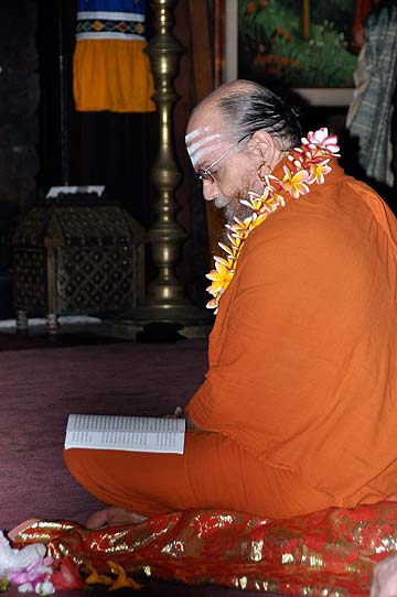 Today was the monthly Chitra Puja for Gurudeva. Bodhinatha here chants Sri Rudram along with all the other monks.