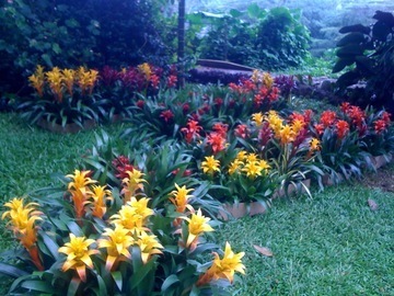 We took the 11-mile journey to the dock, to find 13 boxes of plants. They were a gift from a Big Island grower who wanted to share this amazing flower with the monastery. 180 plants in all, red, yellow, pink. This plant is called Guzmania. Thanks you, David! They will bring a new color to the temple gardens.