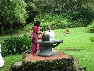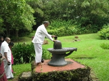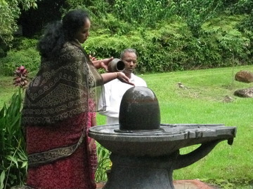 July 31, 2009The Puvanendran Family is on pilgrimage from the UK this week. Today after attending the Sun One Homa, the family toured Iraivan Temple and then worshiped at the Narmada Lingam.