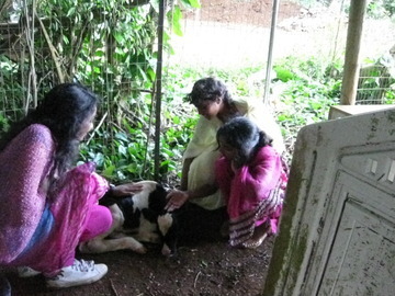 After the tour of Iraivan Temple and the grounds, the family were thrilled to meet the newest addition to the small dairy herd at the monastery.