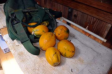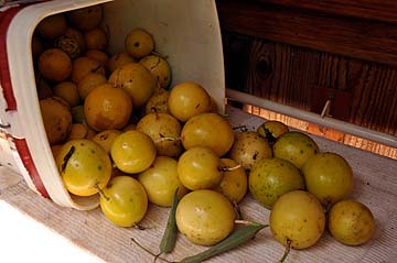 Also, as summer moves toward fall, more and more fruits mature. Passion fruits start ripening early. Lord Siva has had them pre-wrapped in sturdy hard shelled containers.