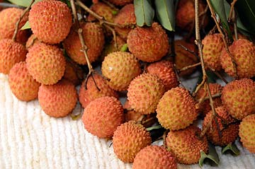 Lichi! They too come with a self-protecting wrapping, like many tropical fruits that need to guard themselves against birds and insects.