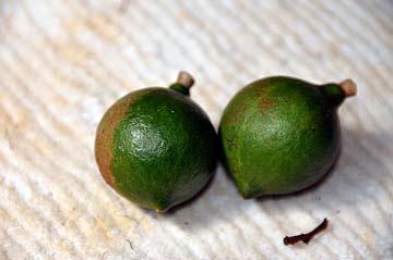 We have two Macadamian nut trees that provide a small crop of rich oily nuts