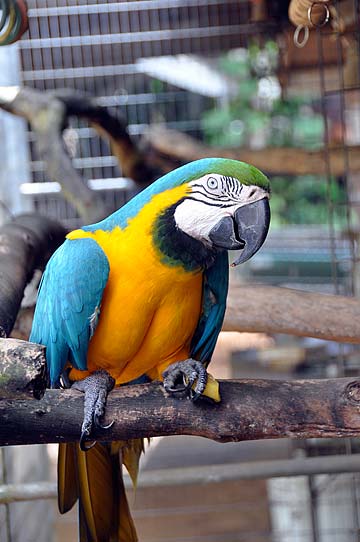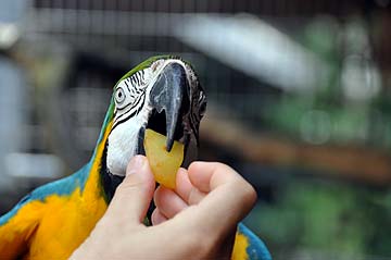 Our giant blue Macaw, Viyagrapada "Tiger Foot" has amazing eye sight. He can see what is happening 1000's of feet away and he knows there's a lot of food arriving today.