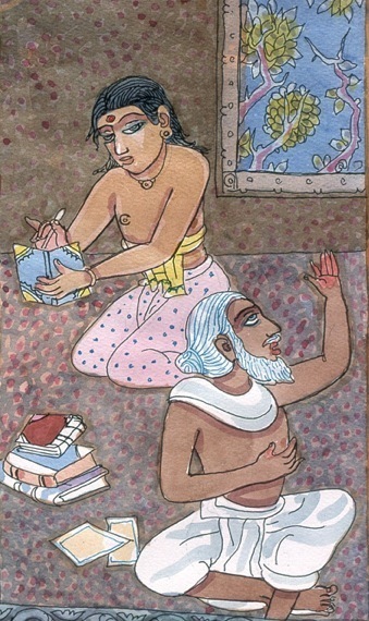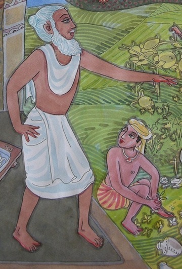 Another time, my wife and I brought our three children to see Yogaswami. Turning to the children, he asked each of them, 'How old are you?' Our daughter said, 'Nine,' and the boys, 'Eleven' and 'Thirteen.' To each in turn Yogaswami replied solemnly, 'I am the same age as you.' When the children protested that he couldn't be three different ages at once, and that he must be much older than their grandfather, Yogaswami just laughed, and winked at us, to see if we understood.
