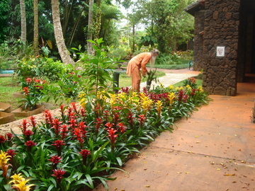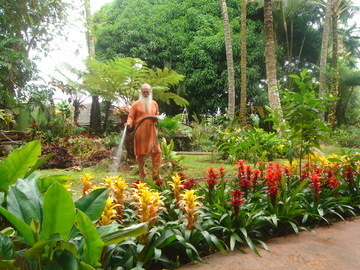 Kauai is officially known as the "Garden Island" and visitors from all over the world marvel at the rich and beautiful array of flora here. The Aadheenam gardens are a tropical paradise, with flowering plants and trees from all parts of the world, lovely tranquil waterfalls and lotus ponds, with sacred shrines and peaceful areas for meditation. It is locally known as one of the most beautiful and uplifting botanical gardens on the island. These plants were a gift to the monastery from someone who loves the idea of sacred temple grounds where seekers can see God Siva everywhere they look.