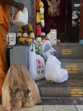 One of the first activities to begin the Nallur festival was the Ganesha abhishekam. In 1981 Gurudeva gifted a Ganesha murthi to the late Arumugam Saravanapavan and his wife Pathmini, and this was the beginning of the Murugan Temple of North America. A beautiful shrine was built for the Ganesha murthi in the temple, and the shrine has since developed a very powerful vibration. Pathmini created a fund (#39) for the Pillaiyar shrine with HHE to insure the continued pujas and abhishekams for Lord Pillaiyar. The fund provides a grant to purchase milk, honey, coconut water, flowers and other supplies for the shrine. Pathmini created this as a single-donor fund in which only members of her family may contribute. Read this inspired story at the HHE web site: http://www.hheonline.org/reports/2003/oct-nov-dec/