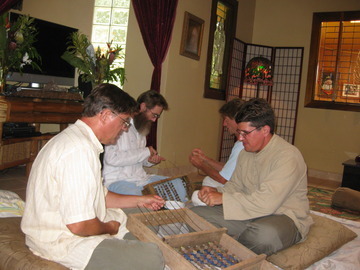 Seated on the floor is student Justice Collier, working on the couch, our host Tondu Sivanatha and Kulapati Durvasa Alahan.