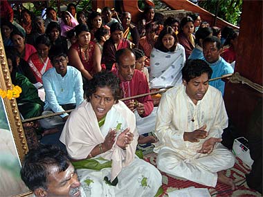 The bhajans are led by sishyas Nanda and Sarada who sing with such loving devotion in their hearts.