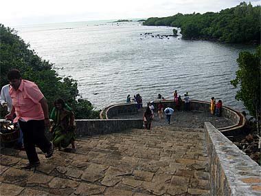 Others going down the river to fill their brass pots with water. That's the Indian Ocean on the horizon.