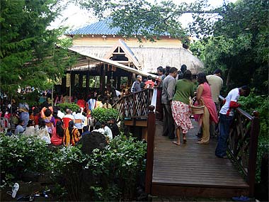 Rajen Manick sends photos and a report from our Spiritual park in Mauritius, a few hundred miles off the coast of South Africa. Pancha Mukha Ganapati decked with garlands and hundreds of flowers for the August Homa. Thousands of devotees attended the ceremony with love and devotion in their hearts.