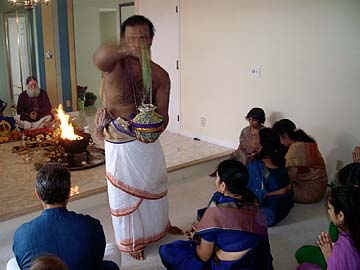 Saivite Priest, Ananth Sivachariar, begins the rituals with Punita and Hotranatha Ajaya.