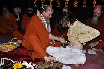 Bodhinatha ties the brahmachariya cord, a token of his pledge of purity.
