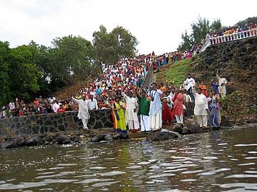 We had Ganesha Chathurthi yesterday.Good weather and a crowd of about 5000 people, may be more, as devotees were flowing in and out since Sunday. Here you see all the devotees bidding good by to all the clay ganesha's as they are taken out to sea in the boats.