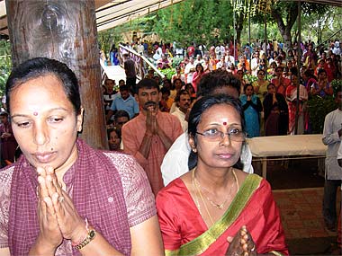 Some of our devotees helping at the Mandapam steps would not miss the beginning of the ceremony.
