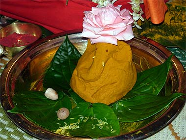 A little Ganesha made of turmeric paste for the ceremony...