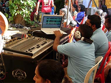 The PA system a allowing the whole ceremony to be aired over the property....