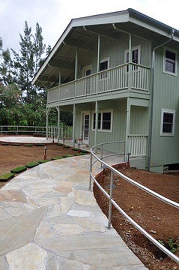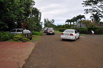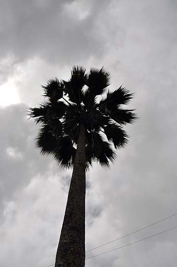 Past a Pritchardia palm, a towering native of Hawaii.