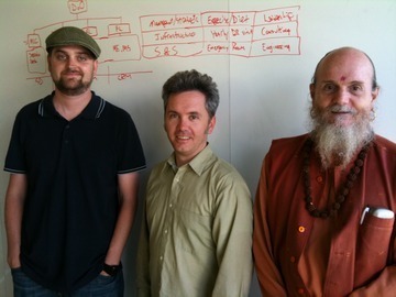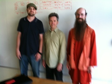 The purpose of our visit to San Francisco, of course, was not just to look at flowers and take a walk in the park! If only life were so slow... Quite the contrary. A year ago Bodhinatha urged the monks in the Ganapati Kulam to offload the care of the monastery's information systems to professionals, so that we could remain focused on what we do best as monks--conceiving and creating educational content. We did just that by hiring Joe Russell (center), who was an independent Apple-certified IT consultant at the time. After telecommuting to the monastery's network for a year from his home in The City to help us with everything from server software installations to installing printer drivers on new computers, Joe is now part of a growing firm called Rocket Science Consulting. Now we don't just have an IT consultant, but an entire, professional IT department to draw upon and call our own!