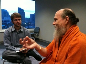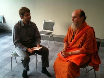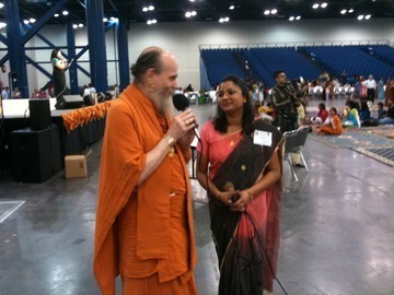 During one of the cultural programs, Mike Morris, a freelance journalist on assignment from the Houston Chronicle, interviewed Bodhinatha in a private side room of the convention center.