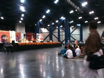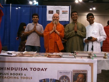 On our way out, we stopped at the prominent Hinduism Today booth, among a few dozen others. Vijay Pallod (right) was instrumental in organizing both the event itself and Bodhinatha's presence here, and Ravi Raghavan (between Vijay and Bodhinatha) was our primary man at the booth. Ravi estimated that some 400-500 families visited the booth, enthusiastically perusing Hinduism Today, What Is Hinduism, The Master Course Trilogy, and taking flyers home so that they could order them on the web. It was a most successful visit to Houston!