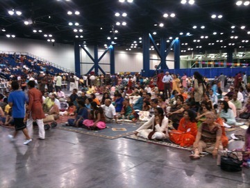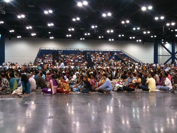 Even after the excited bhajan finale, hundreds sat down and listened intently to Bodhinatha's talk, which focused on Hindu unity, the main objective of the Hindus of Greater Houston, the organization that has successfully organized this event for twenty years now.