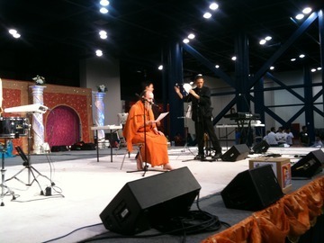 Anup Jalota, a famous Hindustani bhajan and ghazal singer from India, was one of the main attractions of the program. He and his troupe (the tabla player was superb) led the group in lots of Vaishnavite bhajans, some very relaxed and contemplative, some wild enough to entice the group into an ecstatic singing and dancing rapture, especially at the climax.