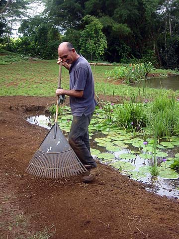 Coming over the hill to the look out over Rishi Valley, we spotted Tandu Sivanathan, a volunteer karma yogi working quietly. Nothing is more unrequested than a standing ovation for someone so humble and transparent. The groups spontaneous action was a desire to show their appreciation for all those who are working to make the experience of the Kauai Aadheenam so beautiful.