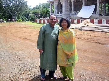 On a bright sunny tour day nothing stands more inviting than the shade of giant Rudraksha trees standing on the West side of Iraivan. This is almost the last place we stop on the tour. A place to relax, ask questions, and talk about fundraising efforts to complete the temple.