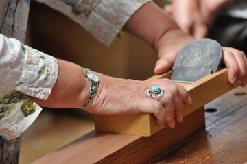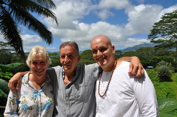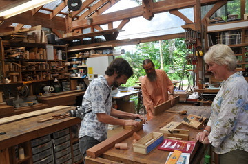 September 1, 2009Acharya Kumarswami takes Cindy, Al and son Jim through the carpentry shop.