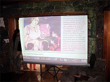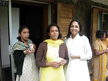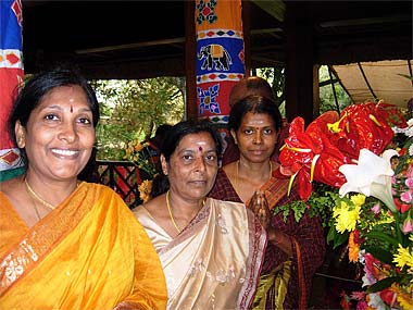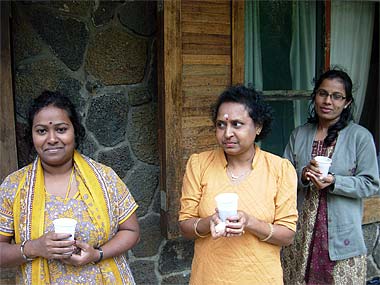 Our new lady catalyst trainees having a coffee break during their monthly August 'Saivite Hindu Religion' and 'PParenting With Love' training session at the Park. They are all three now conducting youth classes on Bodhinatha's teachings.