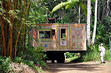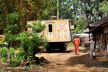 The life of the little office trailer that Gurudeva purchased years ago and had us paint up with lovely designs to create the first MiniMela Visitor Center, has come to an end.