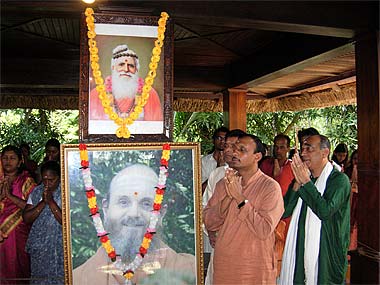 Sanjeeva (left) was one of those first young men to be on Task Force for several months at the Spiritual Park when it was created in 1986. Now Sanjeeva is settled in California, USA. He and his family are very impressed by the recent infra-structural developments at the Park.