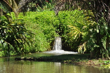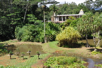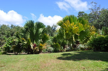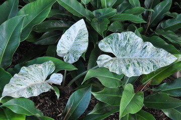 Elsewhere in the garden grows this rare and distinctive Philodendron gigantea variegata.